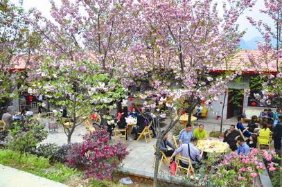 目前,三郎镇凤鸣村、茶园村、欢喜村一带,万亩樱花盛开时不仅绚烂繁盛,蔚为壮观。樱花次第开放,与国内一些知名的樱花观赏地人潮汹涌、车水马龙的景象相比,崇州万亩樱花基地就像世外桃源,清雅、幽静,让人忘掉工作与生活中的不如意,纵情于群山、花海之间,享受难得的恬适。