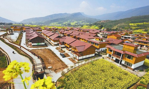 灾后新建的芦山县龙门乡白伙新村美不胜收,当地产业恢复重建、公共服务等基础设施建设全面推进。