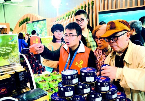 市民对一展台展示的铁皮石斛兴趣浓厚。