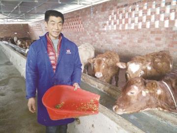 2月8日,在金盆村六畜养牛专合社,该村五组贫困户王小红一大清早就从附近他的易地搬迁聚居点新家赶过来,为专合社购进不久的55头肉牛喂饲料、打扫清洁。看着这批肉牛长势良好,王小红喜不自禁:“每天要忙着喂牛,春节没敢耍,现在天天盼着肉牛出栏。这55头牛,是我们贫困户脱贫的希望!”